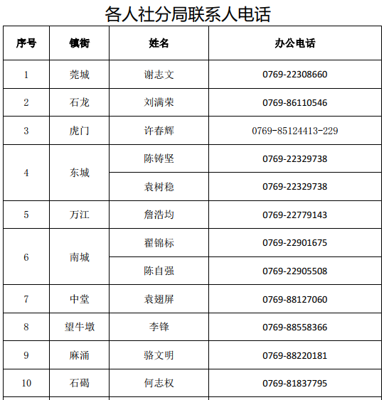 东莞市人力资源和社会保障局人力资源流动管理科21668216,22836692