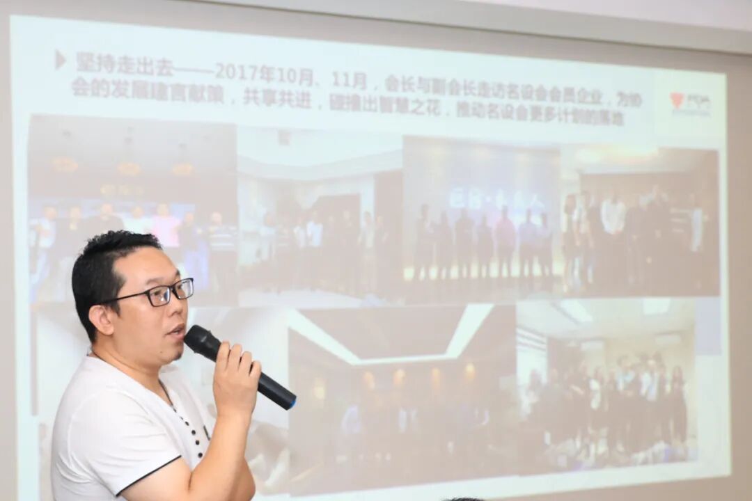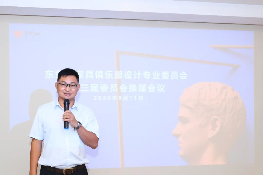 东莞名家具俱乐部理事长林炳辉致欢迎词,他表示名设会自2014年成立,6年来,名设会为家具制造产业及家具设计产业搭建了交流平台,为维护整体家具设计行业整体利益,培养设计力量及促进行业的可持续发展做出了一定贡献。他还表示,未来,俱乐部将继续举力支持名设会的发展。希望在新一届领导班子的带领下,名设会能继续不忘初心,奋发勇为。